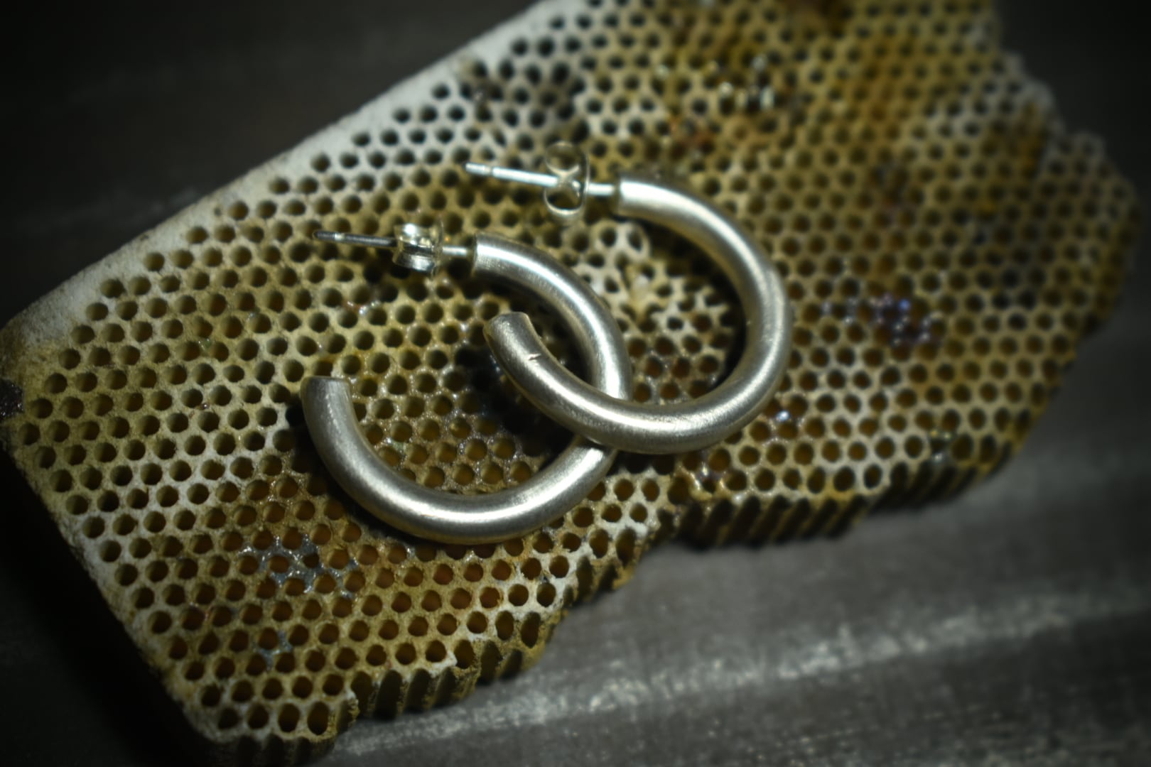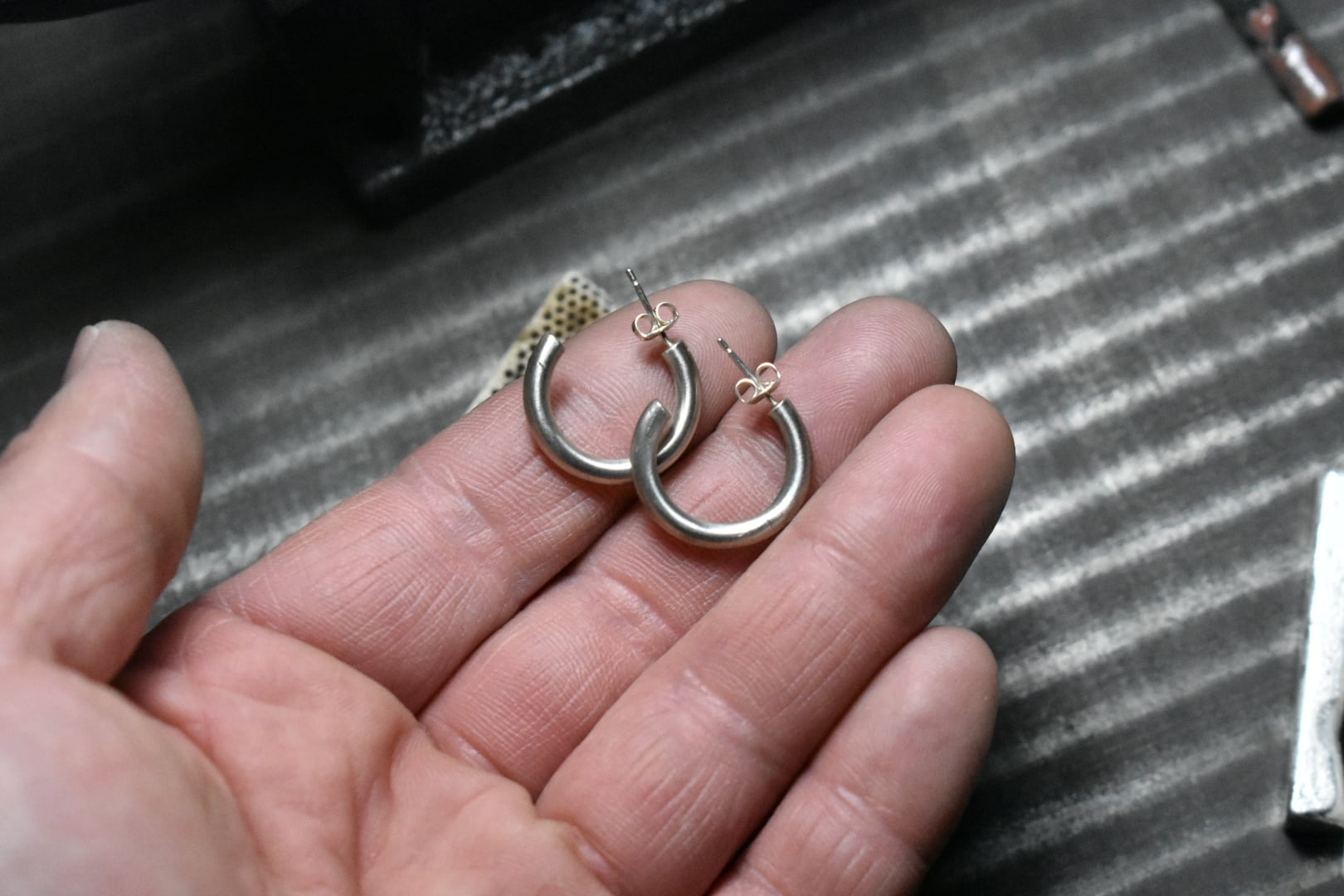 シンプルなデザインですが約3mmの丸線を使用したインパクトのあるピアスとなっています。