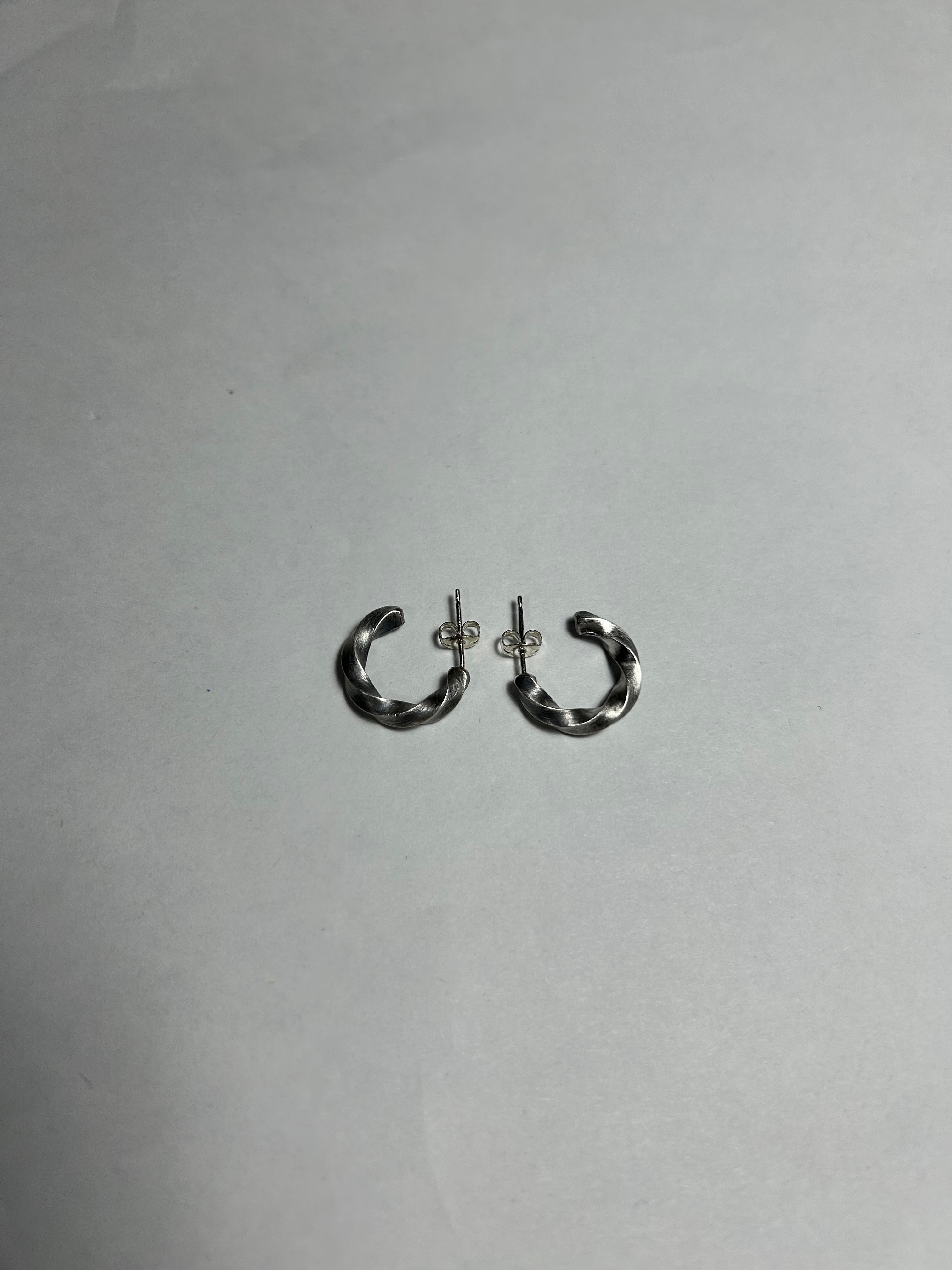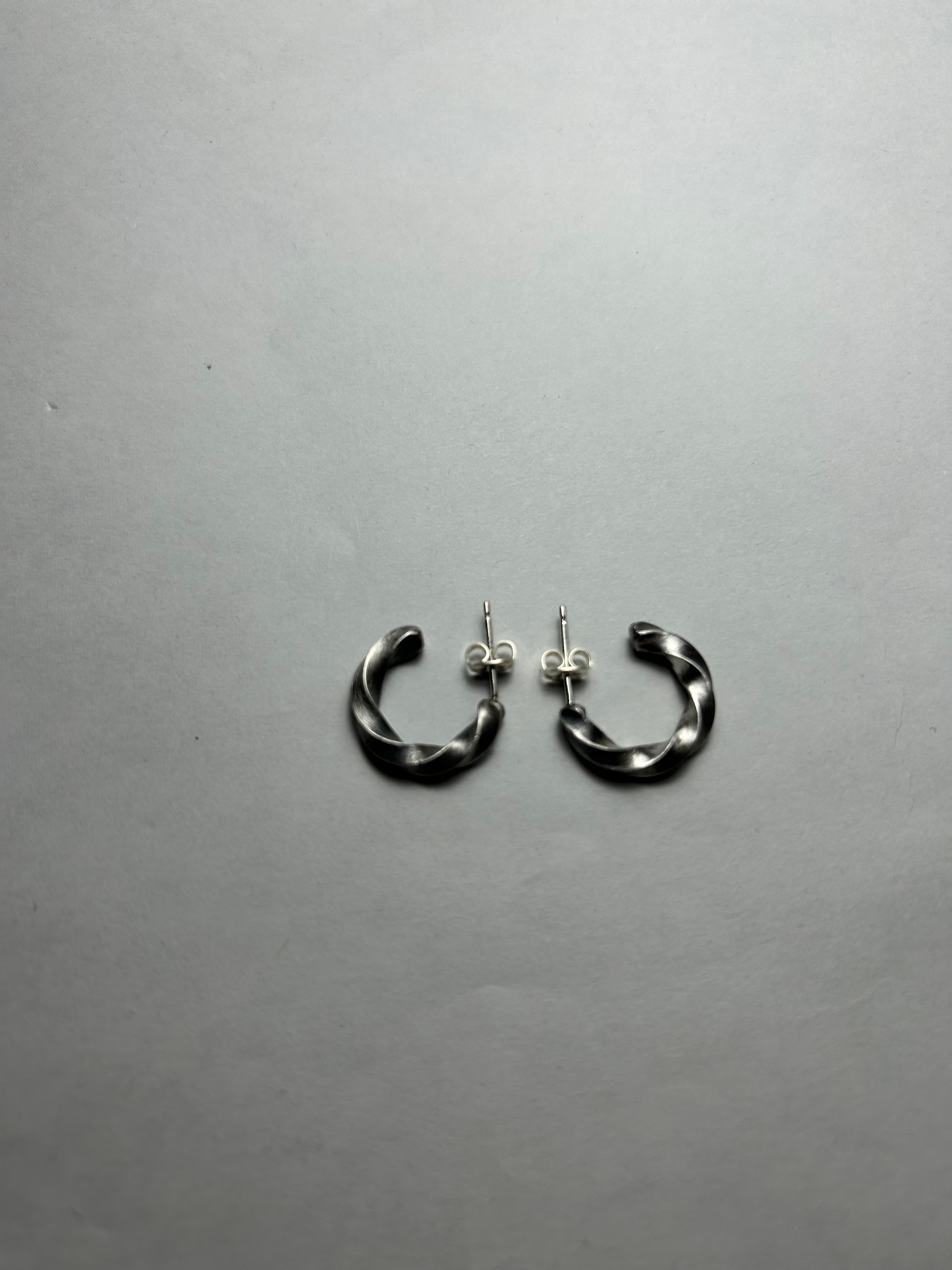 ◆シルバー950製、鍛金技法で鍛えた地金で作る一点物のツイストピアスです。